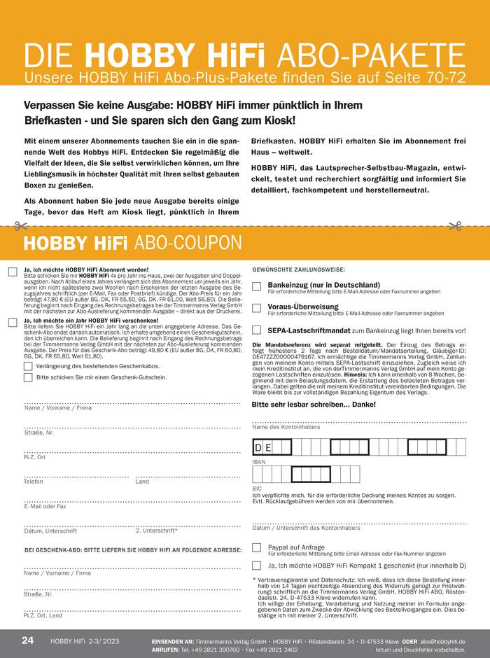 HOBBY HiFi zum Vorzugspreis - so einfach geht das: Ein Formular für die Bestellung können Sie als PDF-Datei durch einen Klick auf das unten stehende Bild herunterladen, abspeichern und ausdrucken. Wir nehmen die